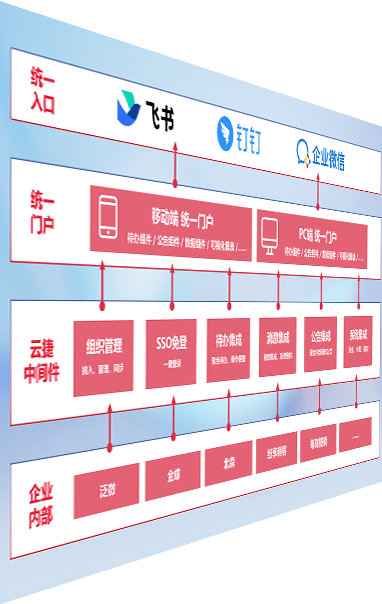 对协作平台提供支持服务,,支持企业应用与协作平台对接,,,,包含组织同步、、、消息集成、、、待办集成等。。支持目前主流的协作平台:钉钉、、、、企微和飞书。。。